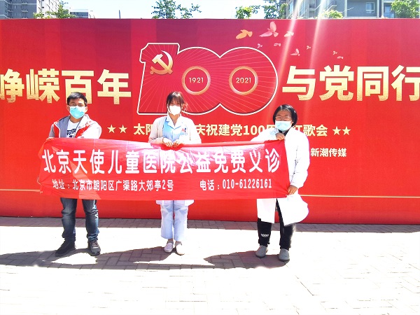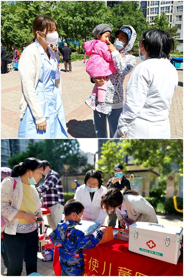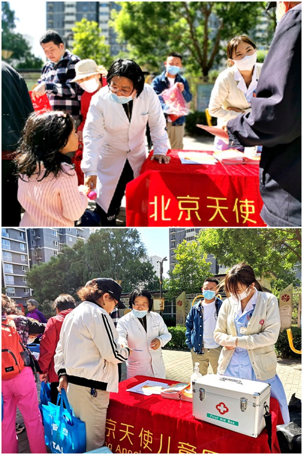 为提高居民的健康意识,增长其健康保健常识,2021年5月7日,北京天使儿童医院公益团队前往北京朝阳区圣馨家园文化广场,开展一系列健康义诊、健康科普等活动,将医疗服务送到居民的身边。